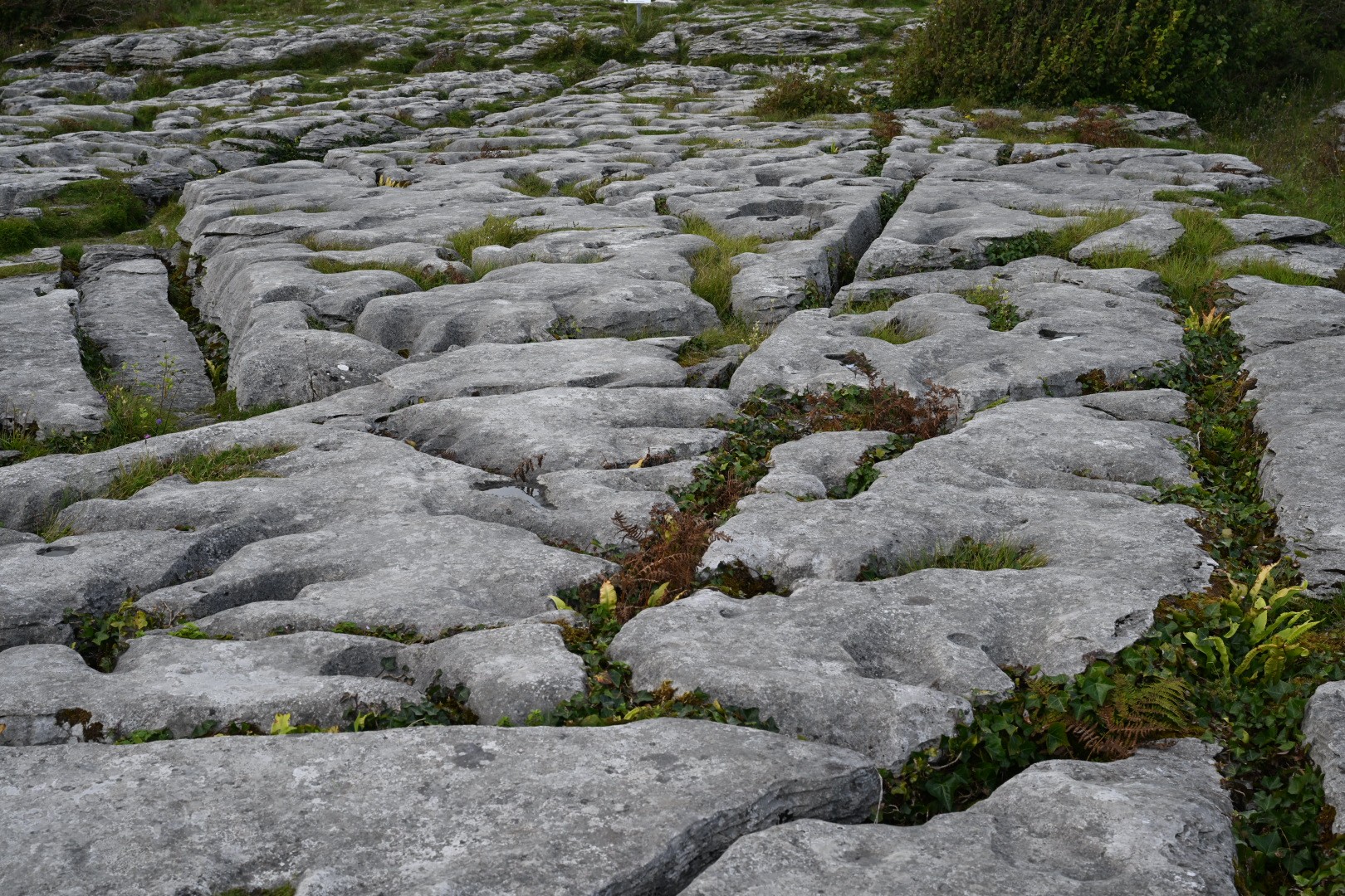 Limestone surface interspersed with vegetation, the Burren.